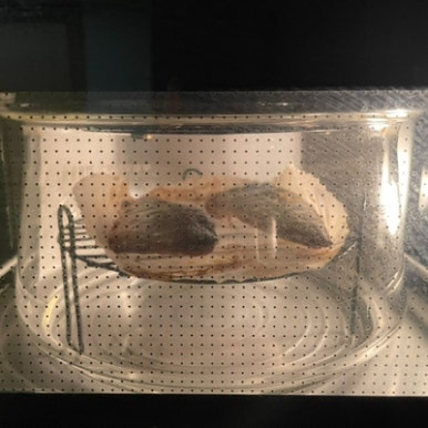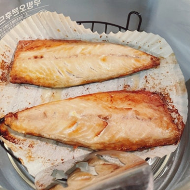 5분이 지나고 오븐에서 막 꺼낸 고등어의 모습입니다.