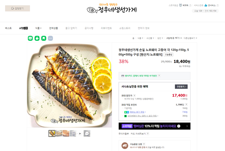 제가 구매한 제품은 정우네생선가게라는 스토어에서 가시가 없어 먹기 편하게 손질된 냉동 고등어를 사용했습니다!